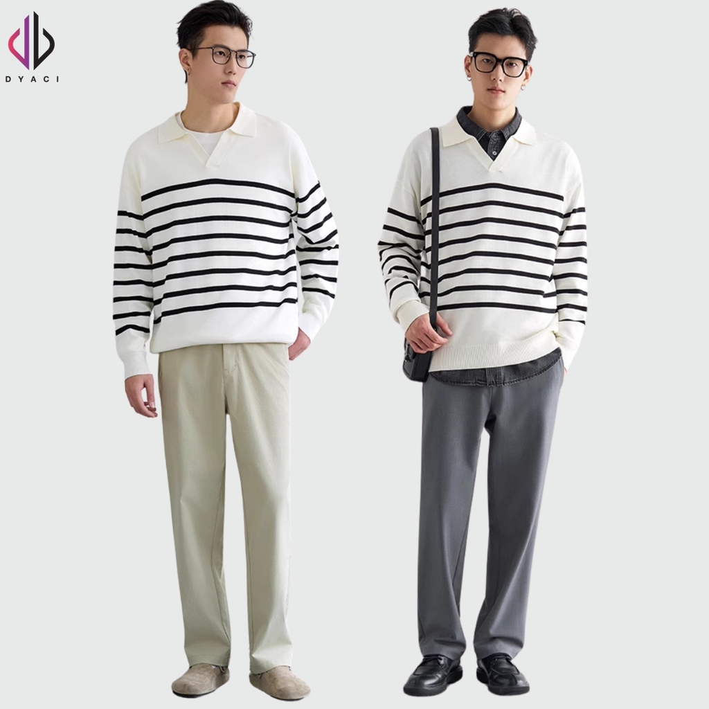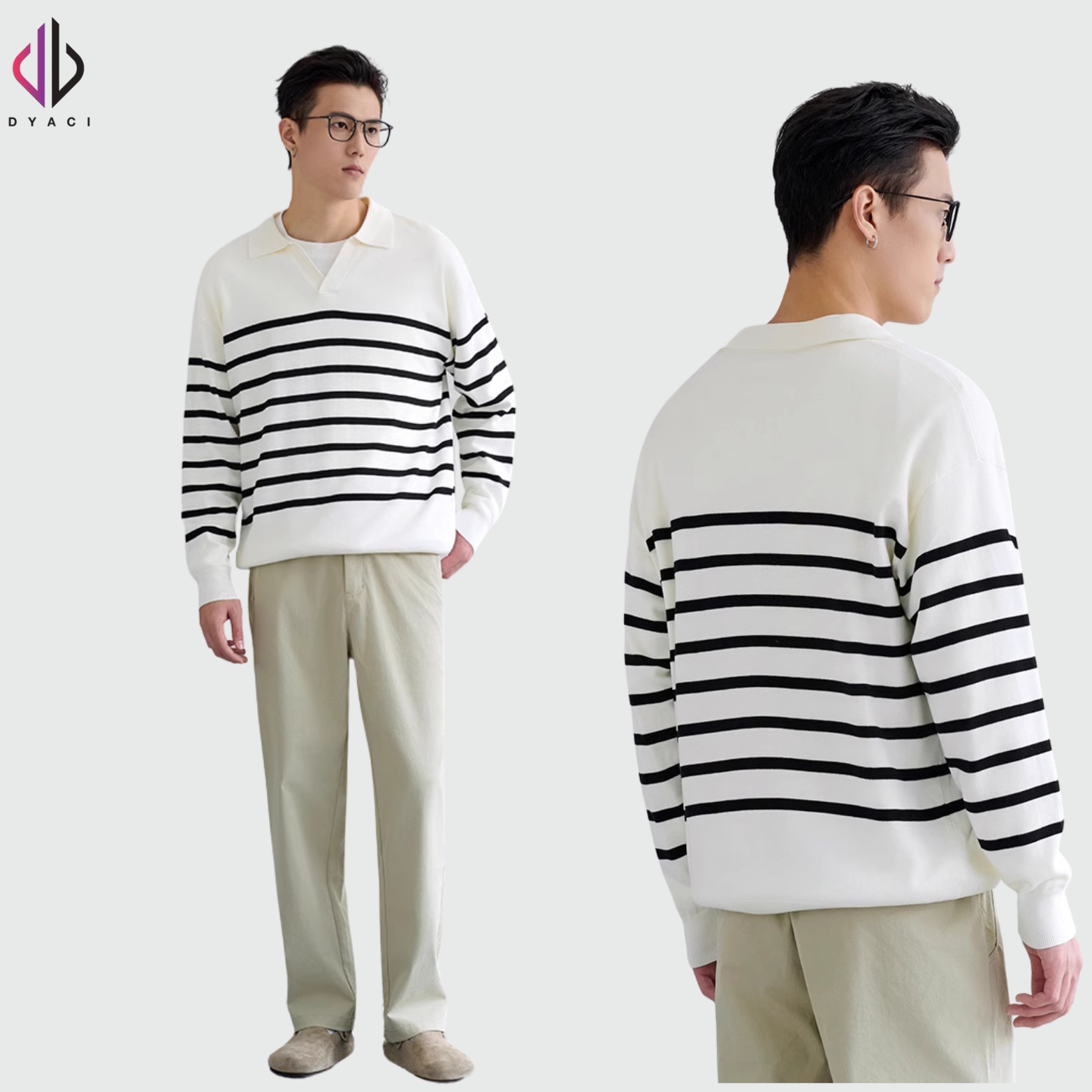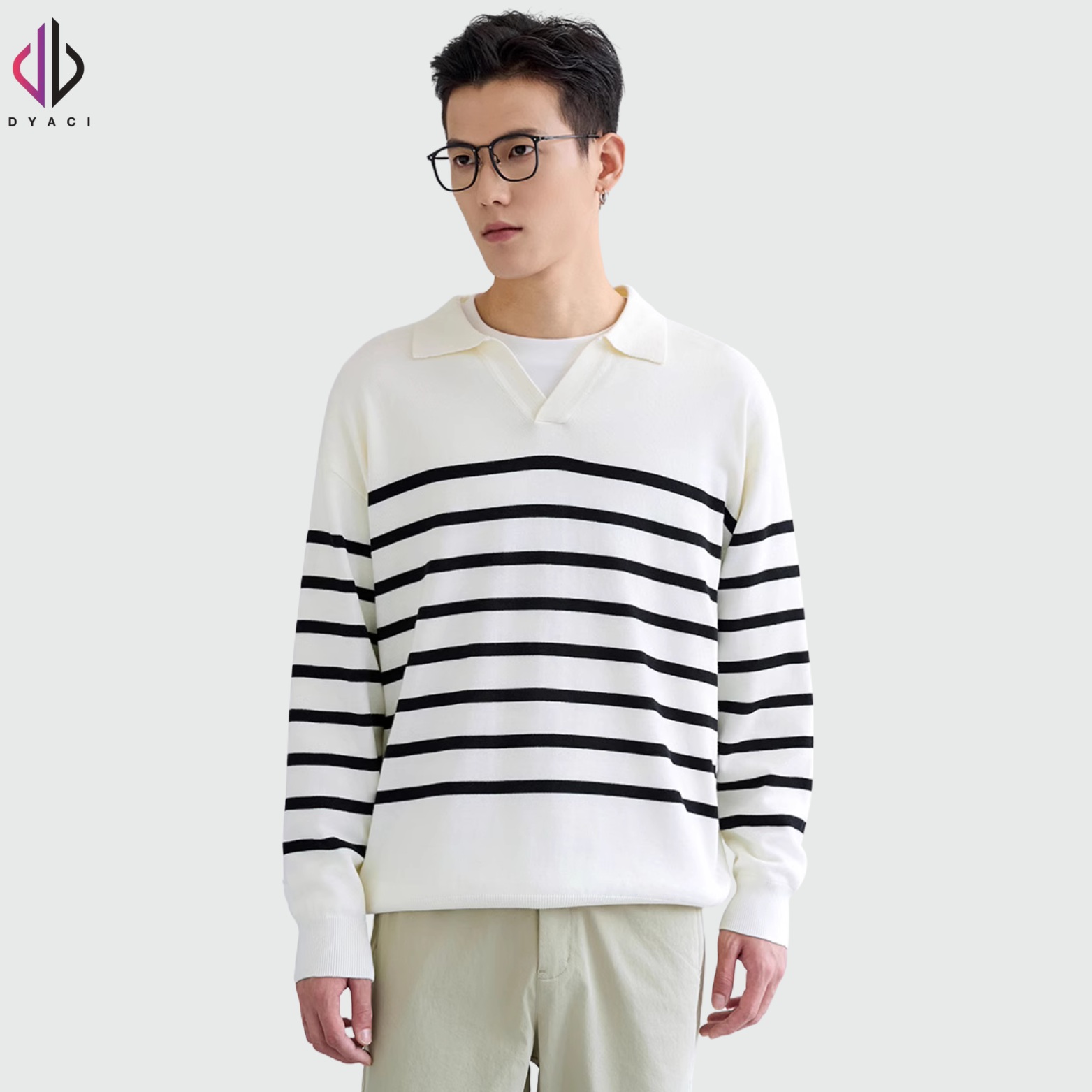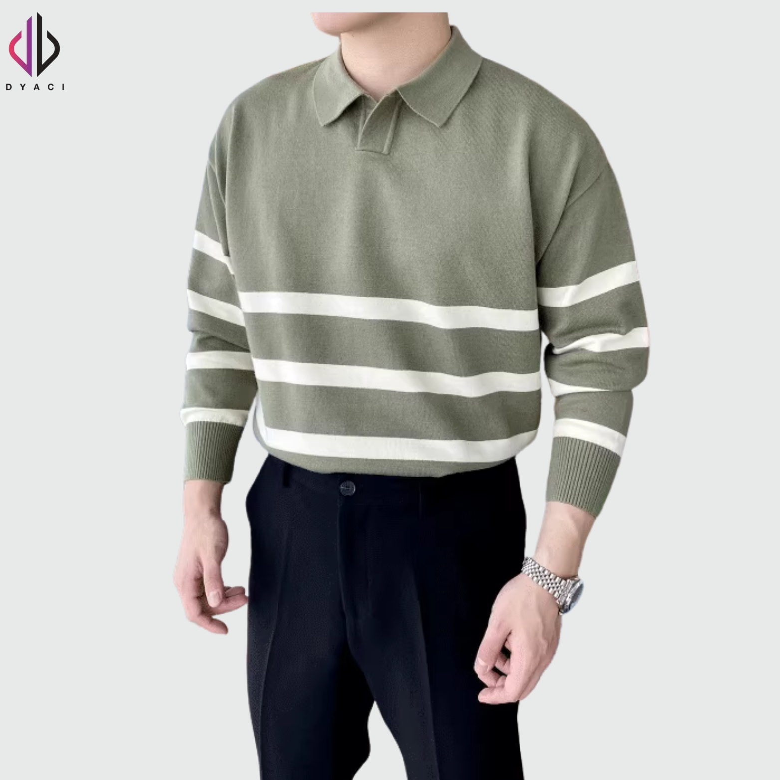 Áo Len Nam Cổ Polo Phối Kẻ Ngang DYACI Kiểu Dáng Sweater Phong Cách Hàn Quốc AL67
