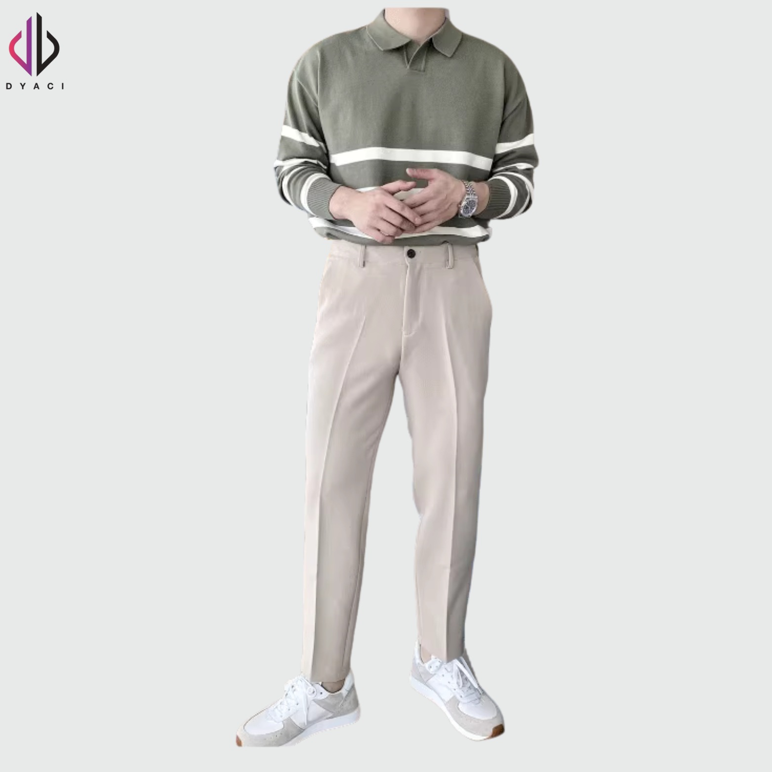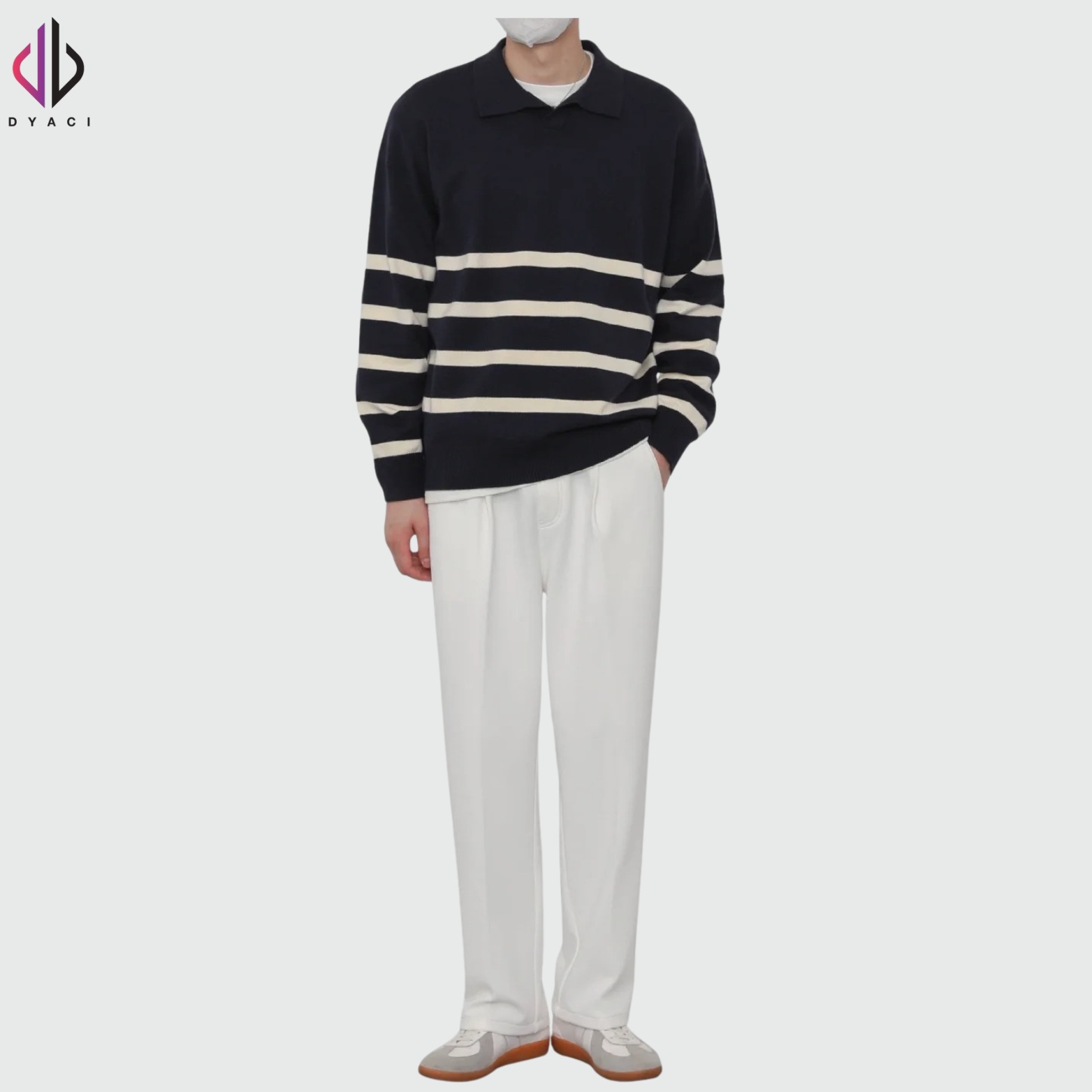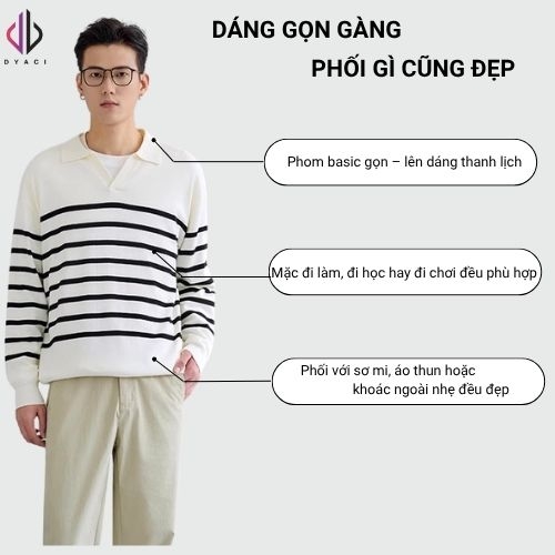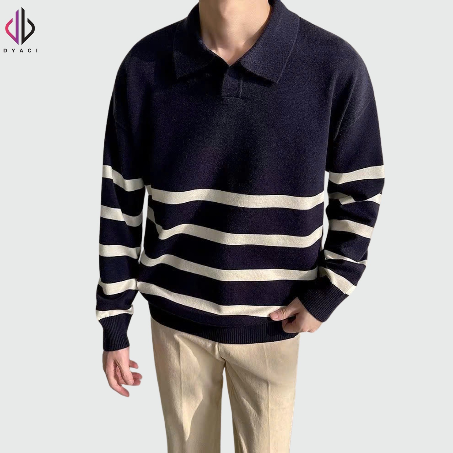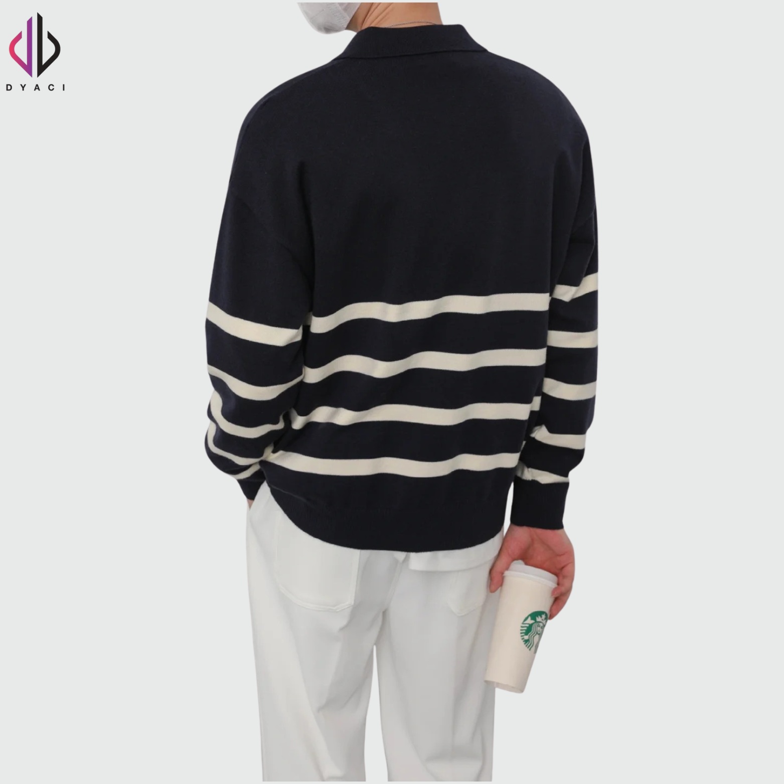 Áo Len Nam Cổ Polo Phối Kẻ Ngang DYACI Kiểu Dáng Sweater Phong Cách Hàn Quốc AL67