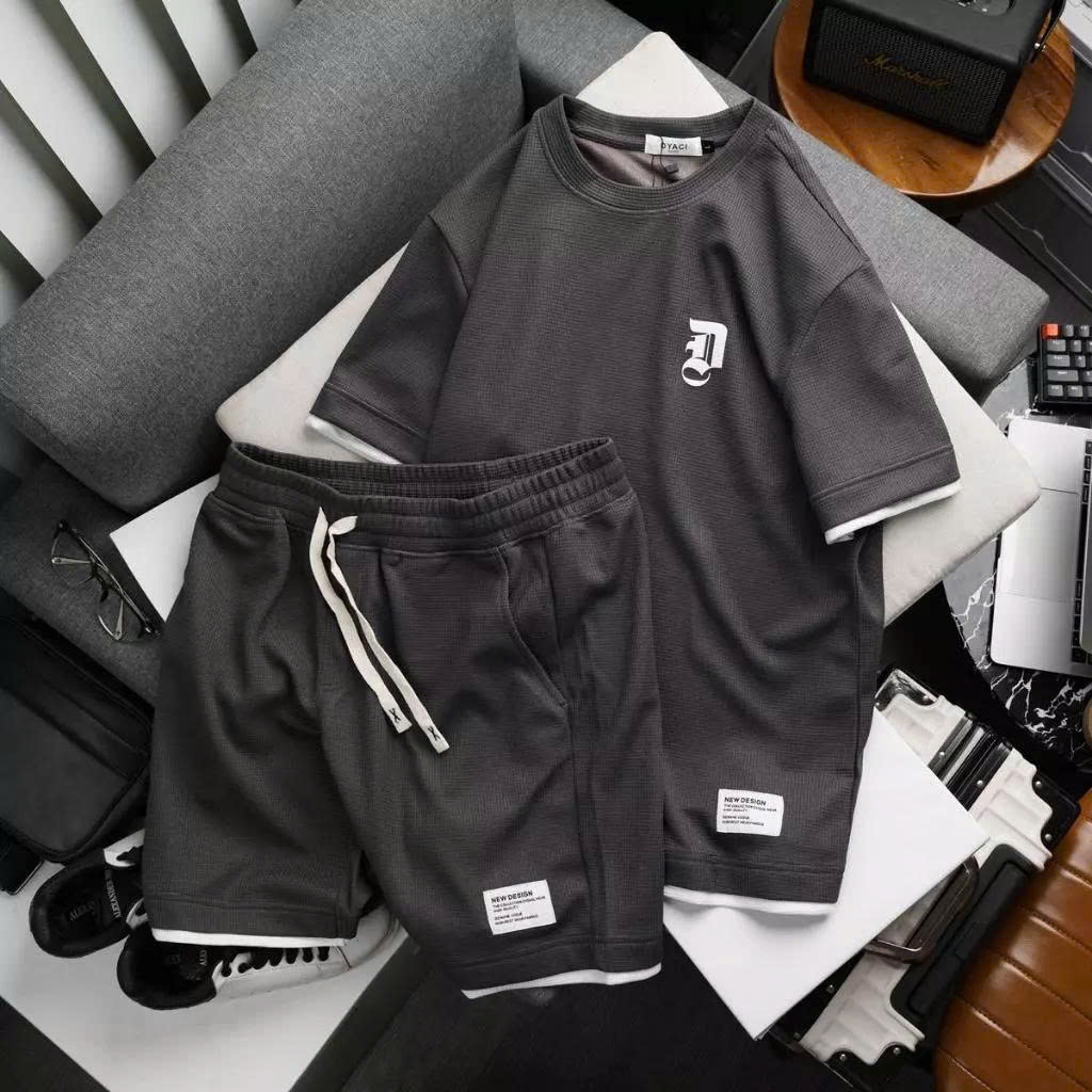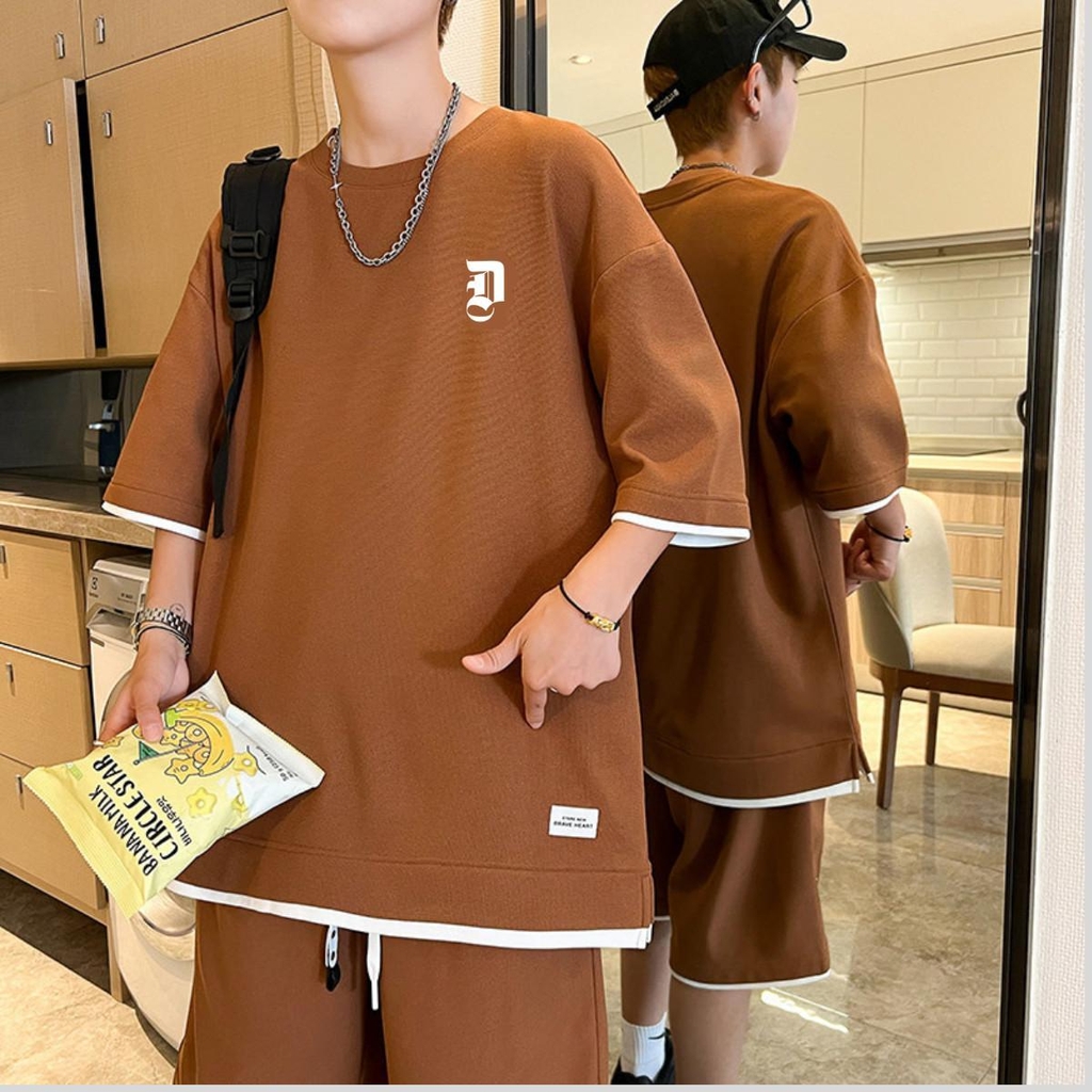 Bộ quần áo phối viền cotton nam nữ Unisex may kỹ in hình DYACI Tay ngắn Menswear DB003