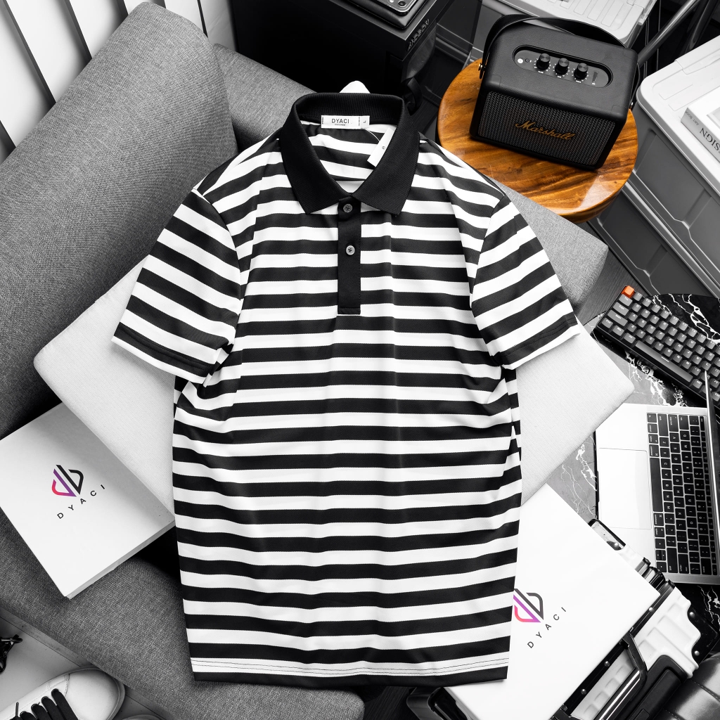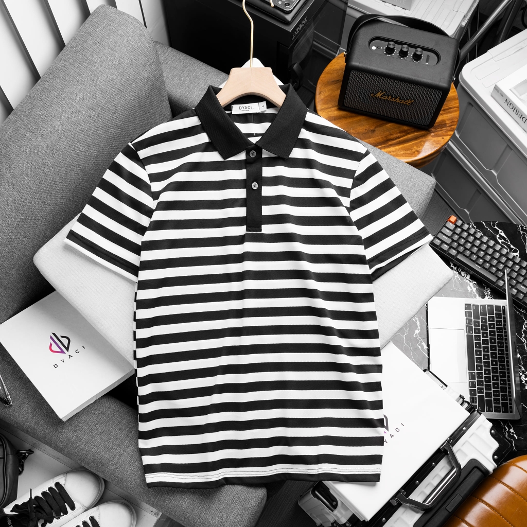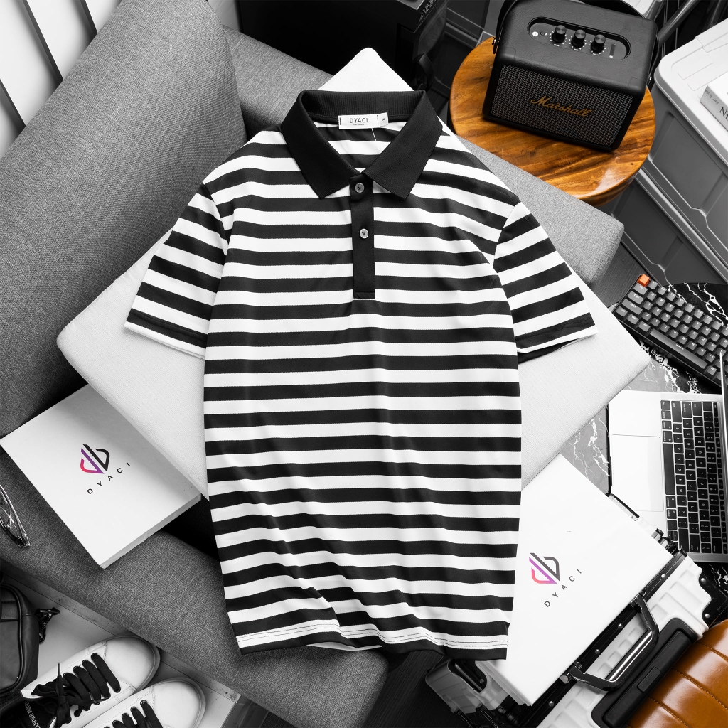 Áo Polo Kẻ To Cổ Bẻ Cộc Tay DYACI Hoạ Tiết Kẻ Ngang To Kiểu Dang Trẻ Trung Phong Cách Hàn Quốc Ngắn Tay Menswear DA004